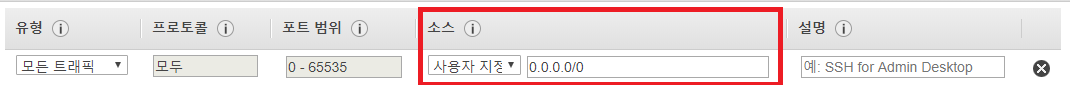 3) 내 IP - 현재 aws에 접속하고 있는 IP로 자동 설정 된다.