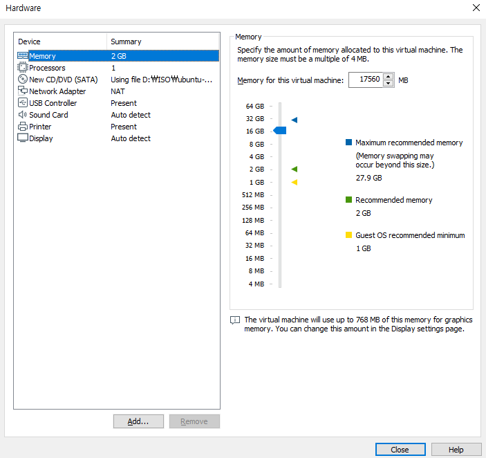 6.1. Customize Hardware... > 원하는 Hadware 설정(저는 Memory를 더 할당해 줬습니다.)