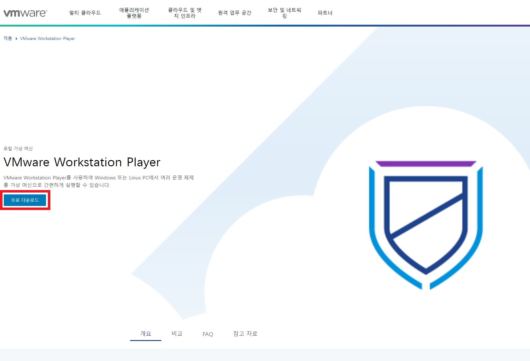 1. 홈페이지(https://www.vmware.com/kr/products/workstation-player.html) 접속