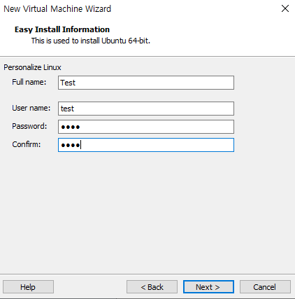 3. 사용자 이름(Full name), ID(User name), Password, Password Confirm 입력 후 Next 선택