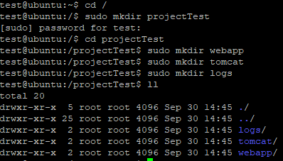 1. cd / > sudo mkdir projectTest > cd projectTest 를 실행하여 Project 폴더를 생성한다.