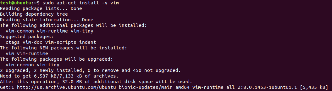 2. 설치가 완료되면 vim test.txt를 실행해 확인한다.