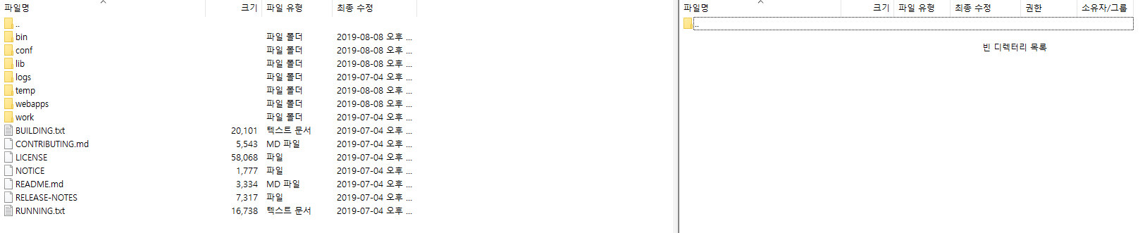 2. 좌측은 tomcat 폴더 우측은 /projectTest/tomcat/ 폴더를 선택한다.