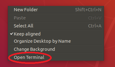 1. 바탕화면에서 우클릭 후 Open Terminal 선택