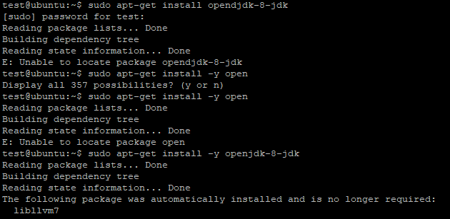 1. sudo apt-get -y openjdk-8-jdk 입력 후 Password 입력