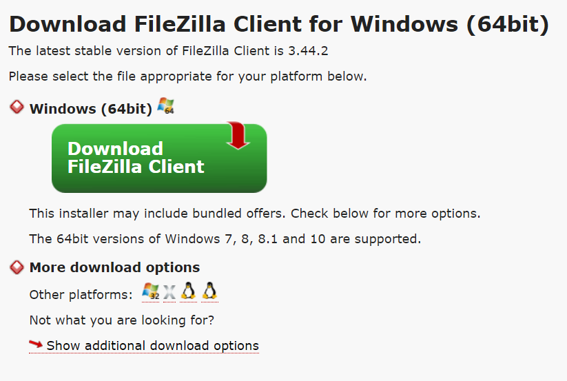 1. 홈페이지(https://filezilla-project.org/)에 접속 > Download FIlezilla Client 선택