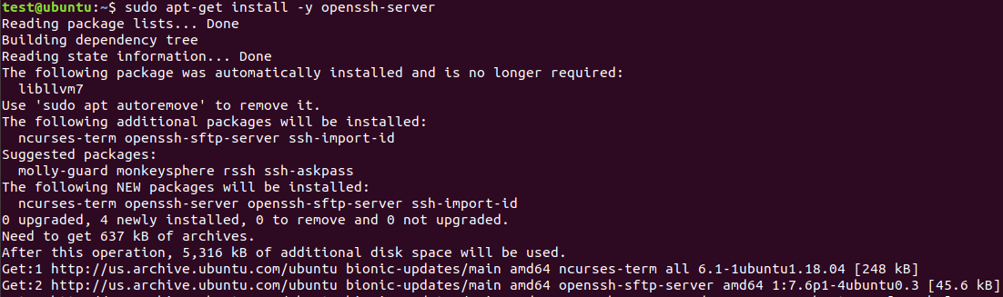1.3. 다시 sudo apt-get install -y openssh-server를 실행한다.
